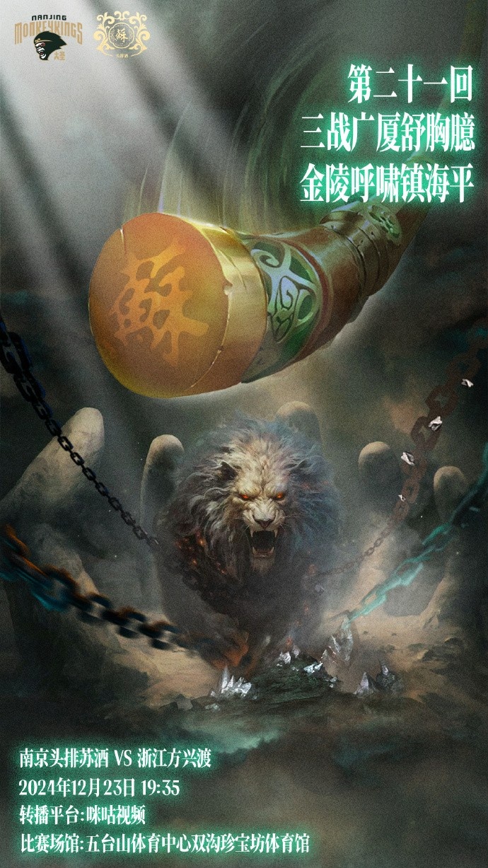 同曦官方晒出了本场海报,配文:“第二十一回,三战广厦舒胸臆,金陵呼啸镇海平。”