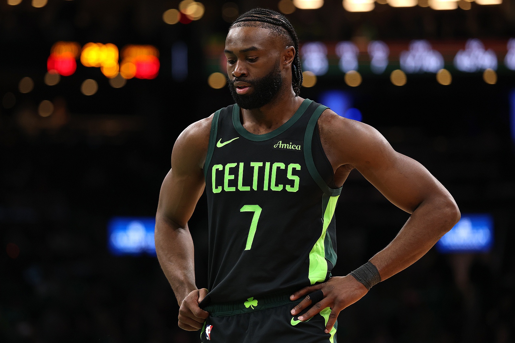 此役,杰伦-布朗仅出战28分钟,15中7,三分9中4,罚球6中6砍下24分3篮板5助攻1抢断,正负值+24。