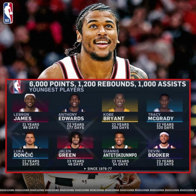 至此,杰伦-格林生涯得分、篮板、助攻数来到了6040/1283/1003,他成为了联盟自1976-77赛季合并以来达成生涯6000分1200板1000助第六年轻的球员(23岁46天),具体如下: