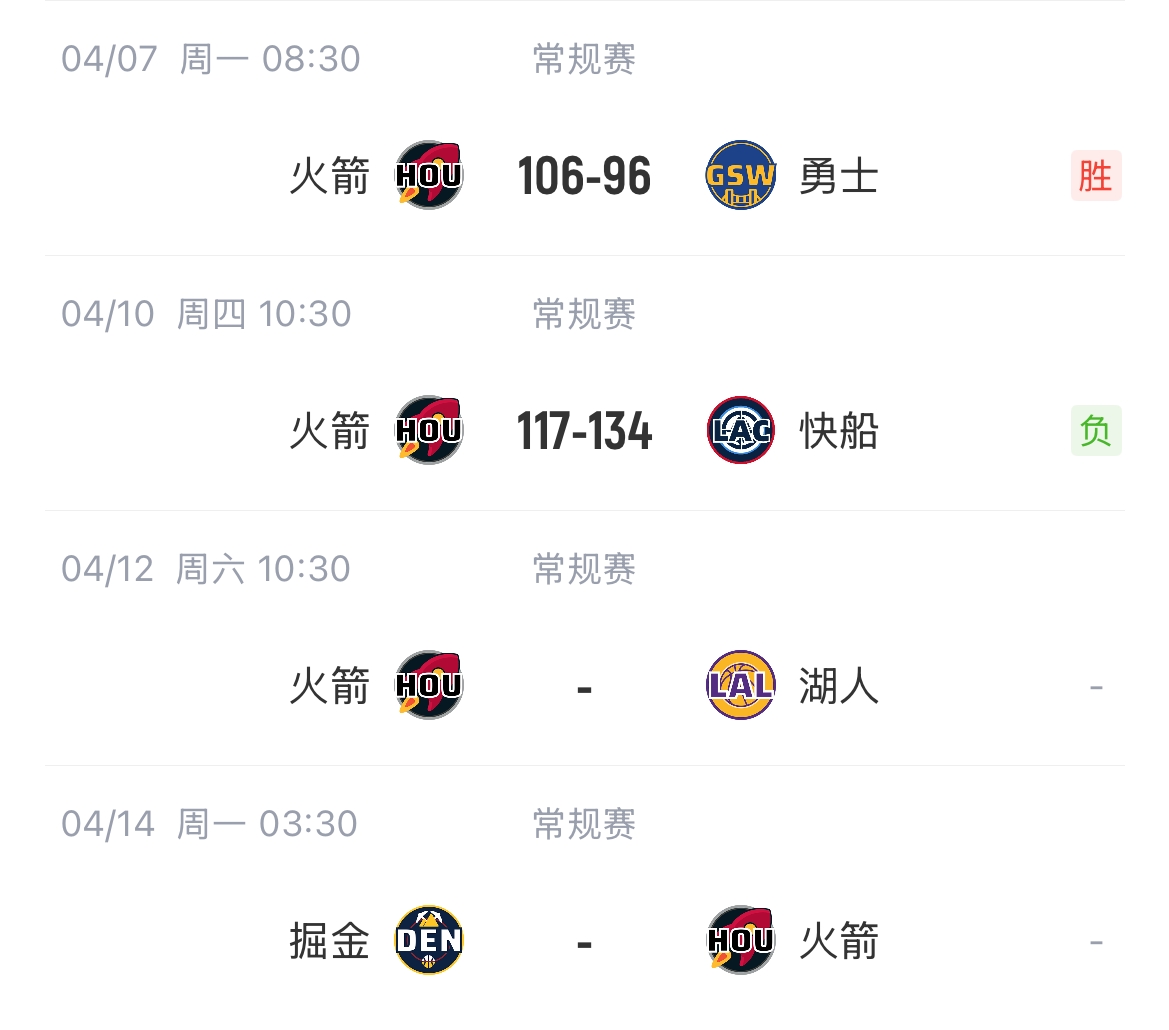 04月12日报道 在火箭击败勇士、雷霆击败湖人后,火箭随后锁定了西部第二。