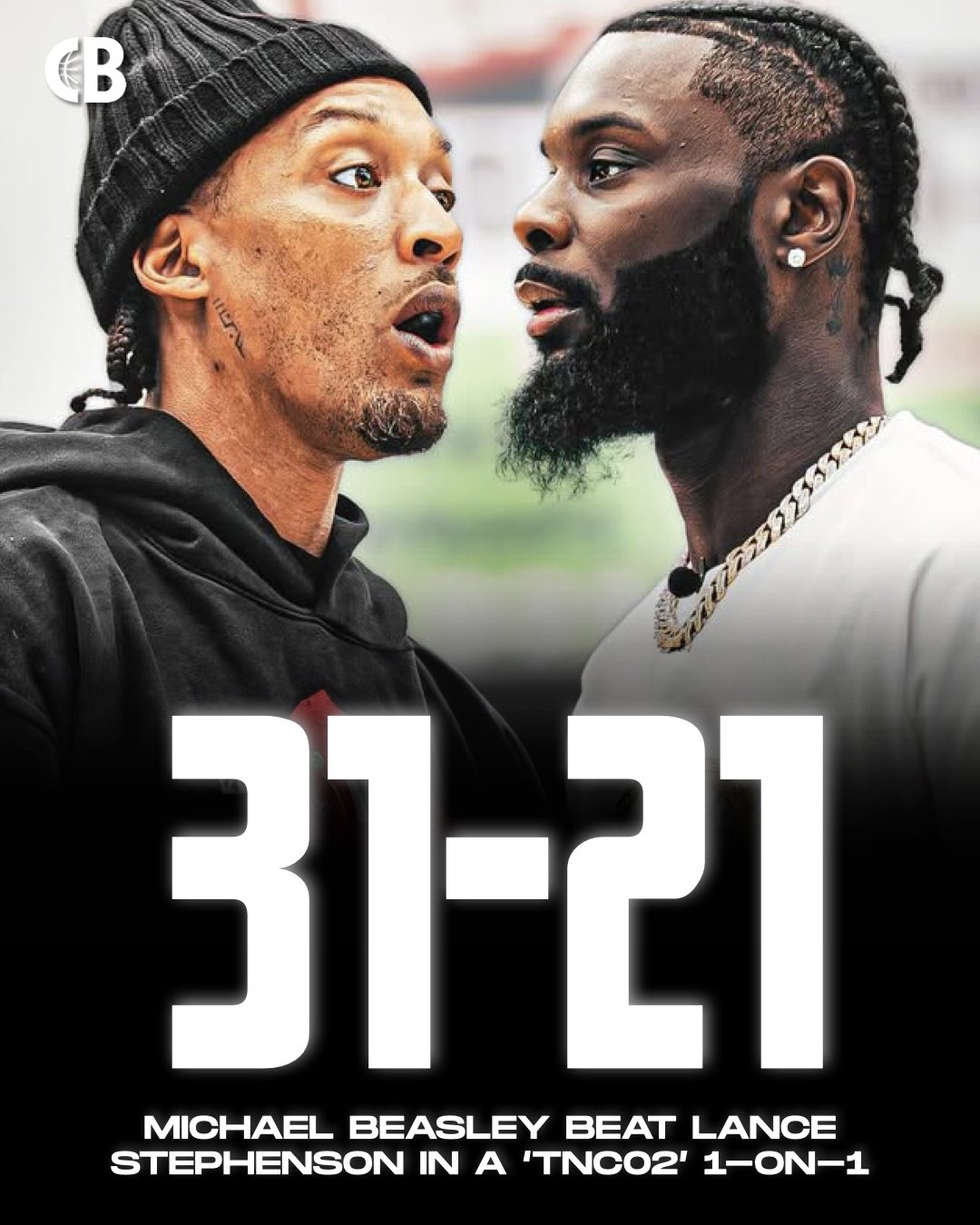 06月07日报道 今日,两位前NBA球员迈克尔-比斯利、兰斯-史蒂芬森进行了一场篮球单挑赛,最终比斯利以31-21击败史蒂芬森,赢得了10万美元奖金。