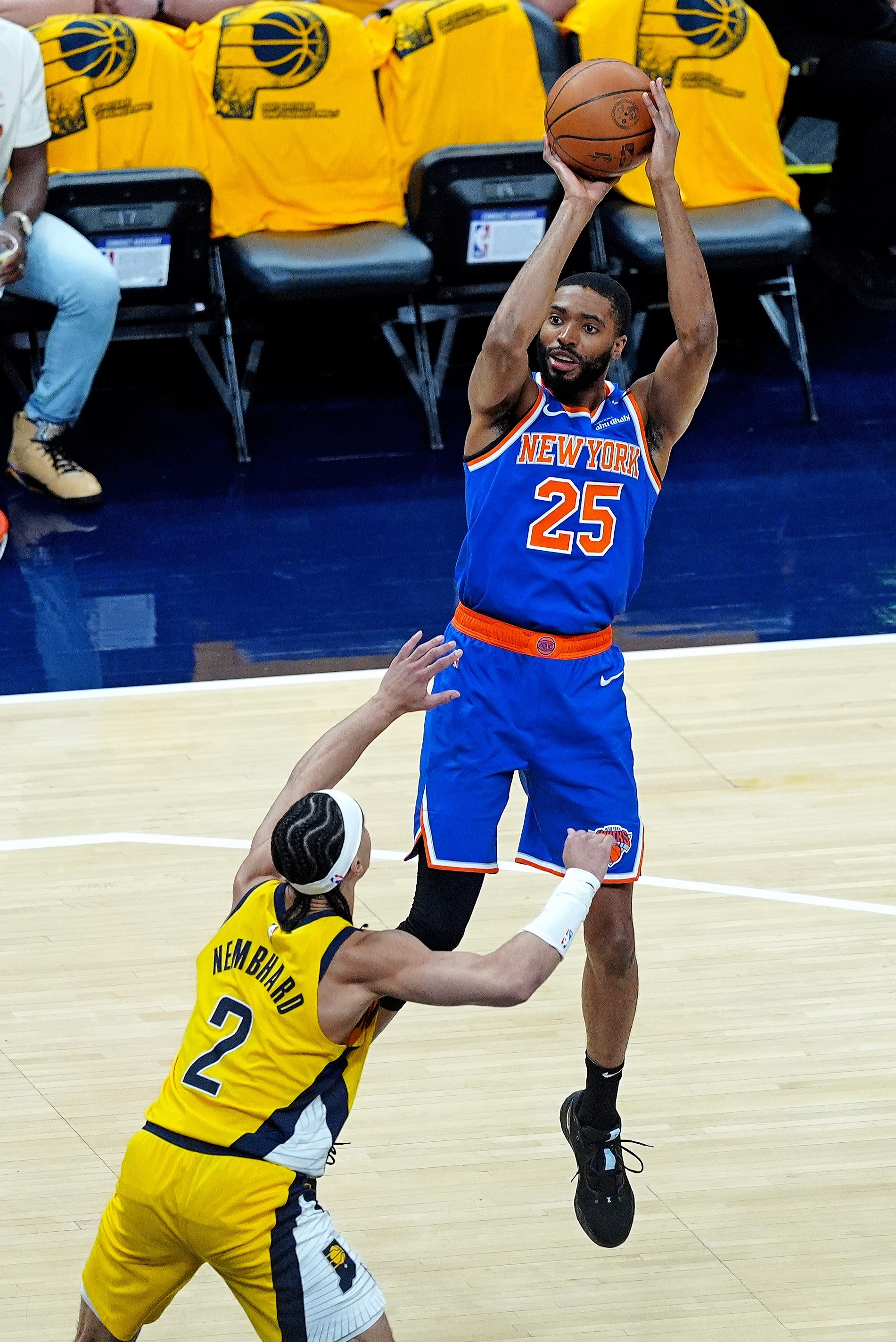如果尼克斯队击败了步行者队,所有这一切可能都会被原谅。步行者队虽然顶级天赋较少,但阵容深度和投篮更好,这一点在第一场比赛史诗般的第四节逆转中表现得尤为明显,当时内史密斯和哈利伯顿重现了雷吉-米勒20世纪90年代最经典的“杀死尼克斯”表现,纽约队在比赛最后2分50秒内葬送了14分的领先优势。