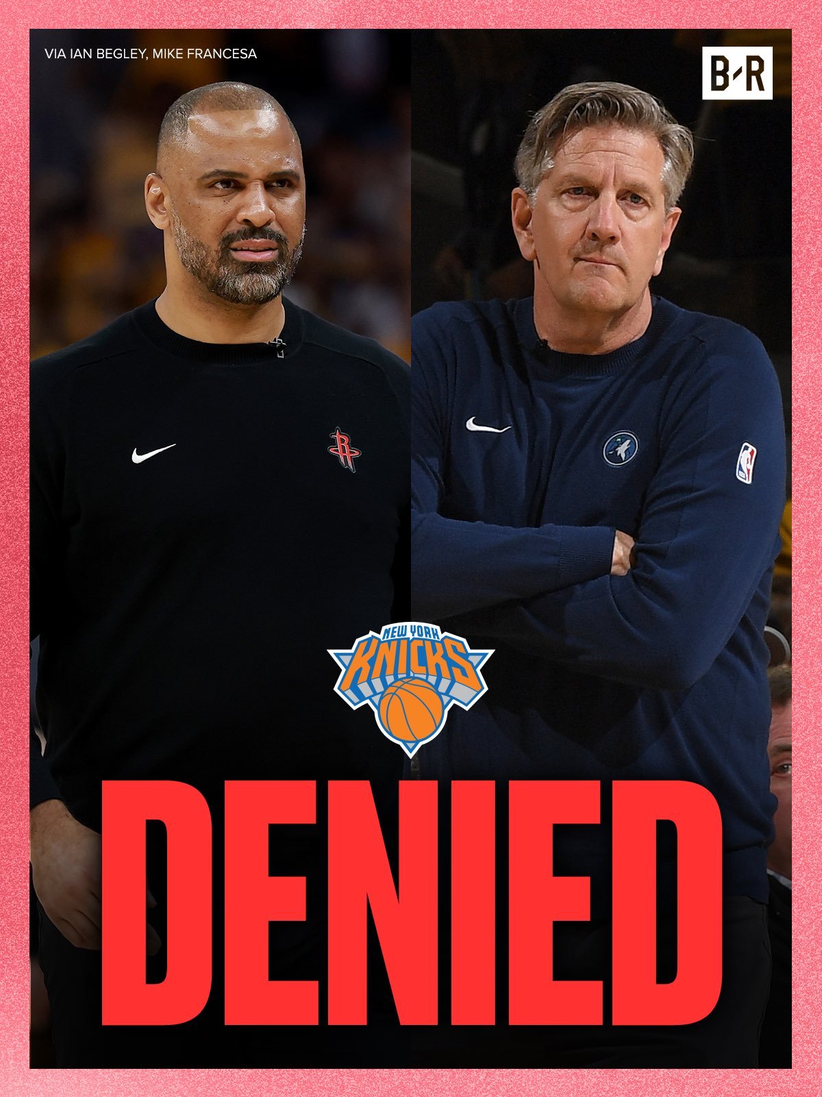 尼克斯本月初炒掉了带队闯入东决的主教练锡伯杜,随后开始找寻新主帅,但是他们的几个心仪对象——独行侠主帅基德预计留队,尼克斯寻求和火箭主帅乌度卡进行谈判、面试,但是也被火箭拒绝。