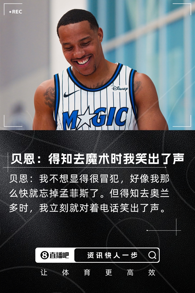 交易官宣后,贝恩首次身披魔术球衣参加新闻发布会。会上他谈到了得知交易时的第一感受: