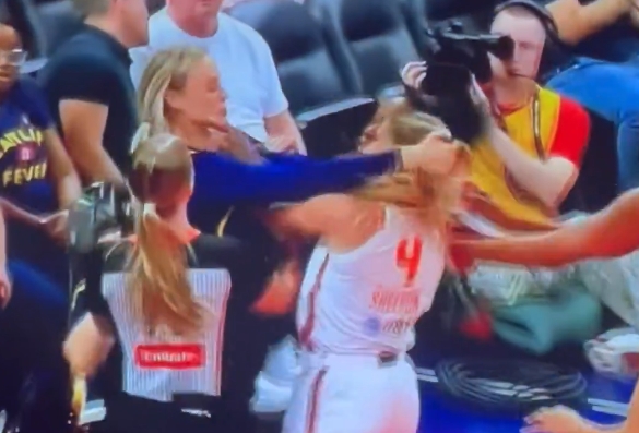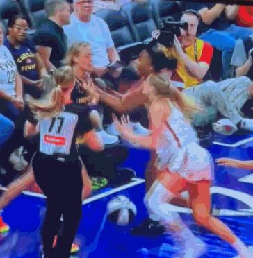 此前的冲突主角太阳球员谢尔登快攻上篮被狂热球员索菲-康宁汉姆强硬犯规拽倒在地,双方再次爆发激烈冲突。