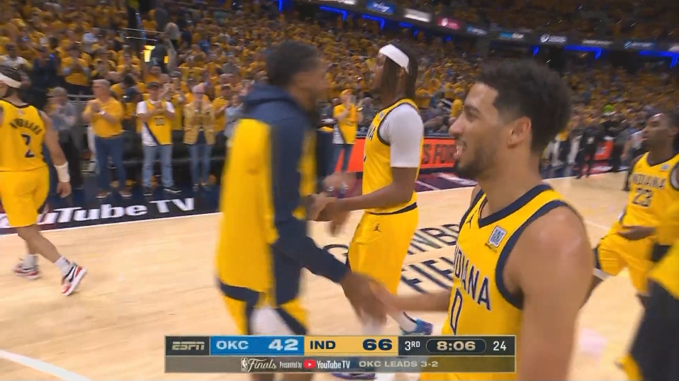 两队半场比分——步行者64-42雷霆(第三节:雷霆投篮6-0,步行者投篮9-1)