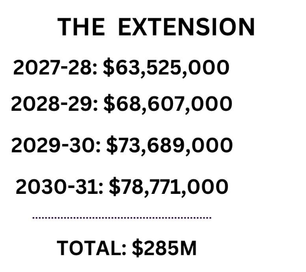 这份合同亚历山大的均薪是7125万美元,具体年薪如下图所示: