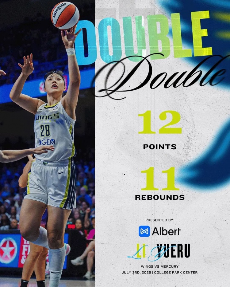 转会至达拉斯飞翼后,李月汝首次拿下两双 图源:达拉斯飞翼社媒