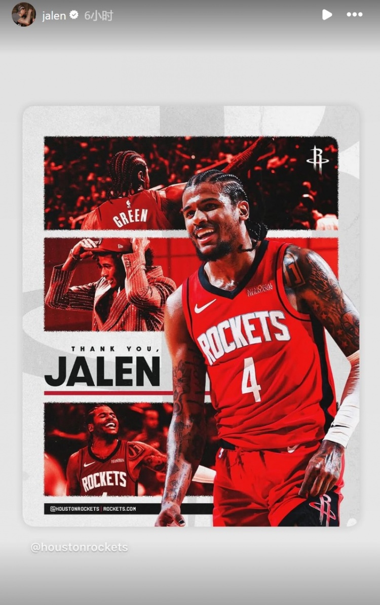 杰伦-格林在INS发图告别火箭,他写道:“休斯敦!!!感谢你们的一切