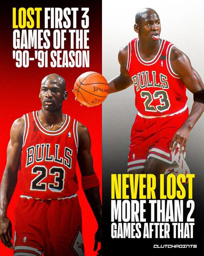 迈克尔-乔丹在1990-91赛季经历三连败开局后,一直到1997-98赛季结束后退役,从未再次经历三连败。这段时间里,乔丹拿下了6次NBA总冠军、6次FMVP、6次得分王和4次MVP。