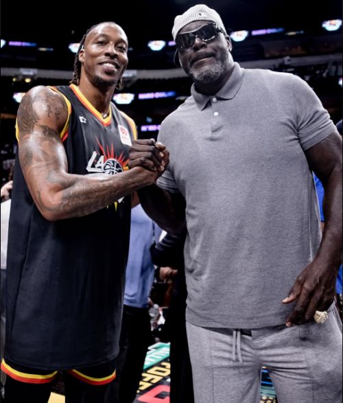 奥尼尔与霍华德握拳合影,奥尼尔还在现场接受采访时表示:“霍华德以为我不喜欢他,我告诉他事情不是这样。我只是需要找一些方法来激励后辈,我就是这么做的。再过两个星期,他就要进入名人堂,我到时候会到场见证。”