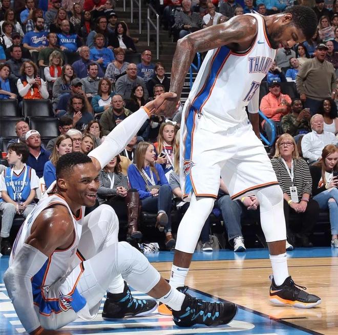 2017年他被交易去了雷霆,18-19赛季是他的巅峰赛季,入选了双一阵,在MVP评选上高居第三,但雷霆在季后赛无法突破首轮。2019年休赛期他申请交易,转会去了快船与新科FMVP伦纳德联手,不过他也换回来了亚历山大和大把选秀权,为雷霆夺得队史首冠打下基础。