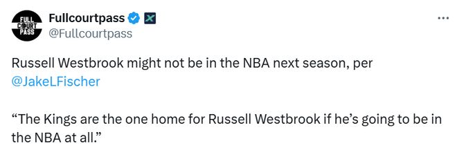换言之,如果国王最终没有签下威少,威少就有可能在下赛季告别NBA。此前已经有记者表示,如果新赛季开始后威少仍未签约,他也不会感到意外。