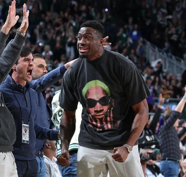 要是字母哥扣篮,那他会直接蹦起来活跃气氛。上个赛季他因为跟腱撕裂暂别雄鹿,但他依旧会出现在雄鹿的主场看球,依然充当着气氛组的作用给雄鹿的球员尤其是他的弟弟提供情绪价值。