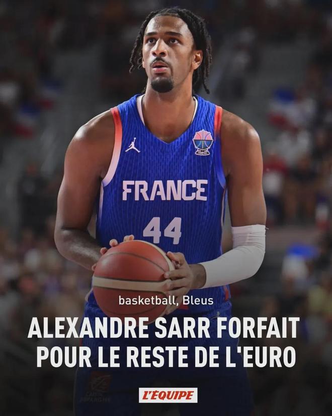 24届NBA榜眼秀萨尔因小腿肌肉伤病将休战数周时间,从而今年欧锦赛报销,仅代表法国出战两场,场均上阵19.5分钟,贡献9.5分4.5板1帽。