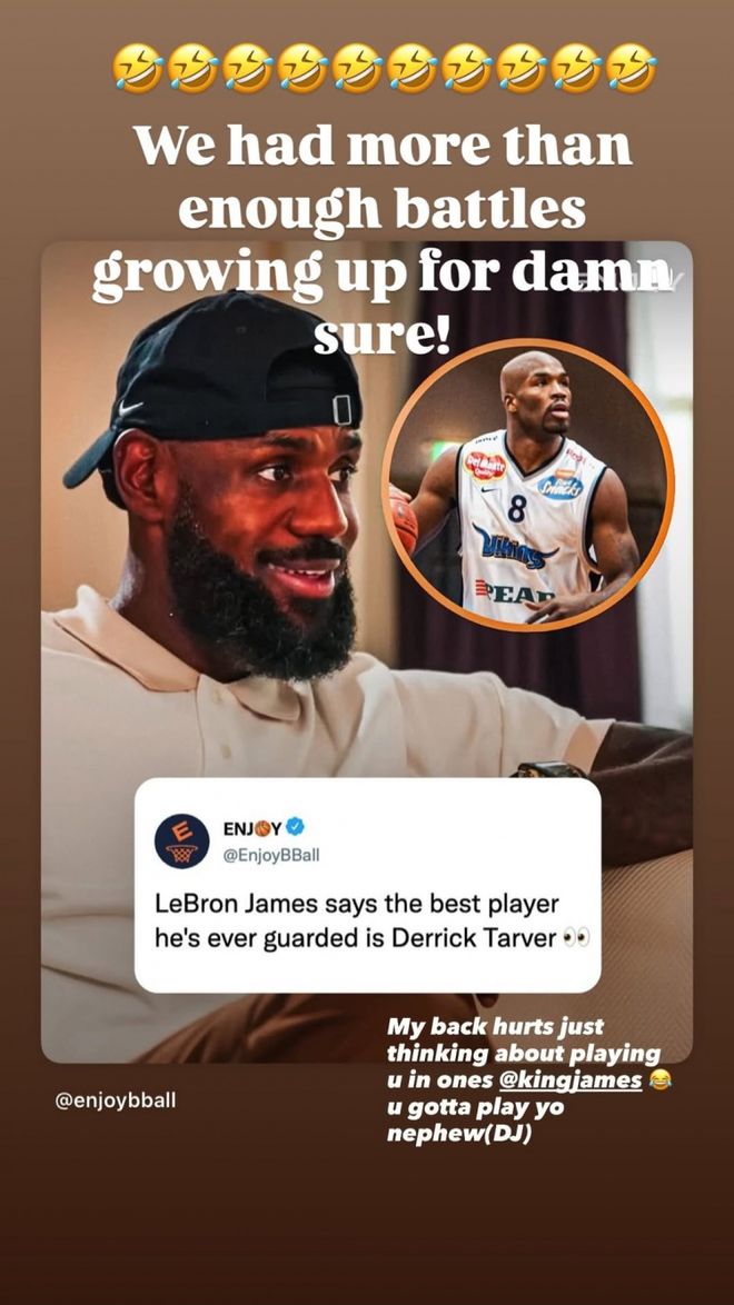 詹姆斯表示如果说的是任何级别的篮球比赛,那他选择最难防守的球员就是一个叫德里克·塔弗的小伙伴。詹姆斯说自己七八岁的时候(詹姆斯刚打篮球不久),被当时10岁、比所有小伙伴都要强壮的塔弗打爆了。七八岁的自己根本防不住10岁的小伙伴。当然,在詹姆斯开始学会打篮球后,塔弗就再也动不了詹姆斯。