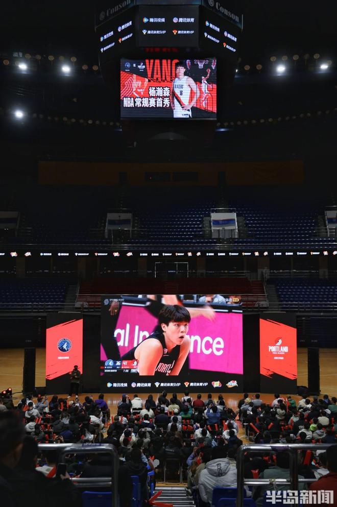 北京时间10月23日上午10点,波特兰开拓者队迎来新赛季NBA首战。从青岛男篮走出的中国球员杨瀚森,迎来常规赛首秀并通过罚篮取得2分。青岛国信篮球俱乐部在国信体育馆举办第二现场观赛活动,600多球迷现场火热观赛,隔空为杨瀚森加油助威。