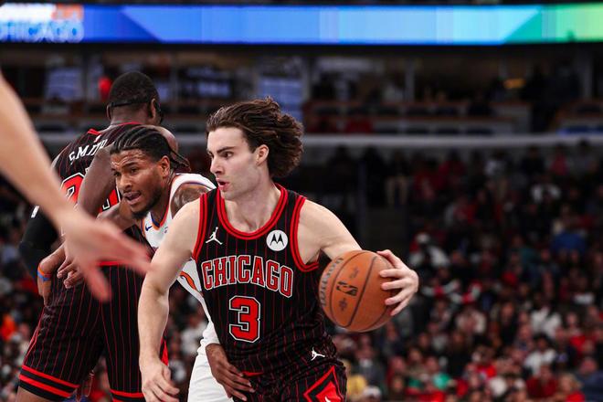 公牛队有这样的成绩,从前几场来看,吉迪是绝对的功臣。今年休赛期,看起来公牛队就要留不住吉迪,好在最后还是达成了续约。今天和上赛季东部强敌尼克斯的比赛,半场下来吉迪就10投7中,三分球5投4中得到了21分6篮板4助攻1抢断,且没有1次失误。全场21投12中,得到了32分10篮板9助攻1抢断的准三双数据。而32分,是吉迪职业生涯新高。而且从比赛观感来看,吉迪真的很适合作为球队核心来培养,至少个人打法是这样的。比如持球快攻,眼观六路,声东击西的空中接力直塞布泽利斯扣篮。还有外线持球三分,相当自信,就是巨星打法!以及单打尼克斯核心布伦森的那一球,能看得出来作为高个子控卫手活相当不错。