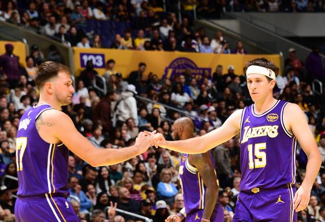 东契奇火力全开,詹姆斯和里夫斯也展现了进攻火力,他们的进攻效率很高。尤其在第四节初段,东契奇在场下休息。詹姆斯和里夫斯率领湖人扩大了领先优势。