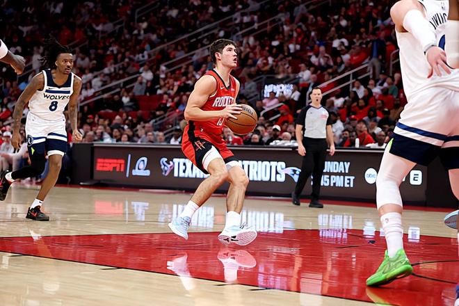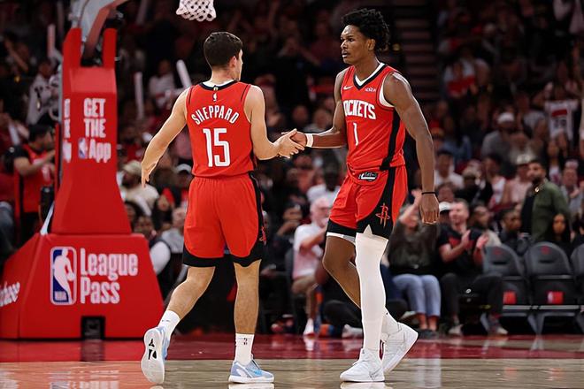 本场比赛中,火箭的替补后场新星里德-谢泼德(Reed Sheppard)的表现算得上是令人刮目相看。谢泼德全场出场18分41秒,投篮9中5,三分线外6中4,得到了14分2助攻2抢断的数据,还有2次犯规,正负值为+11。谢泼德在进攻端终于找到了自己应有的手感和比赛感觉,他的进攻效率终于回到了应有的水准,他的得分能力和投射能力终于有了体现,他也终于在进攻端起到了关键的作用。谢泼德也算是具备一定的支配球能力,而且他在本场比赛中在防守端也没有被对手重点针对。谢泼德在本场比赛中的出场时间依然非常有限,但是他还是起到了关键的作用,他也为球队的这场关键胜利做出了巨大的贡献。