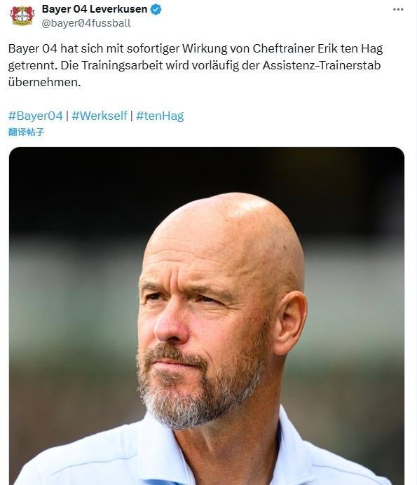 根据媒体的消息,俱乐部1日上午做出了决定,并立即告知了他。而据德国天空体育消息,在勒沃库森高层做出决定后,球队上午的训练也将会推迟,滕哈格已经驾车驶离勒沃库森训练场。