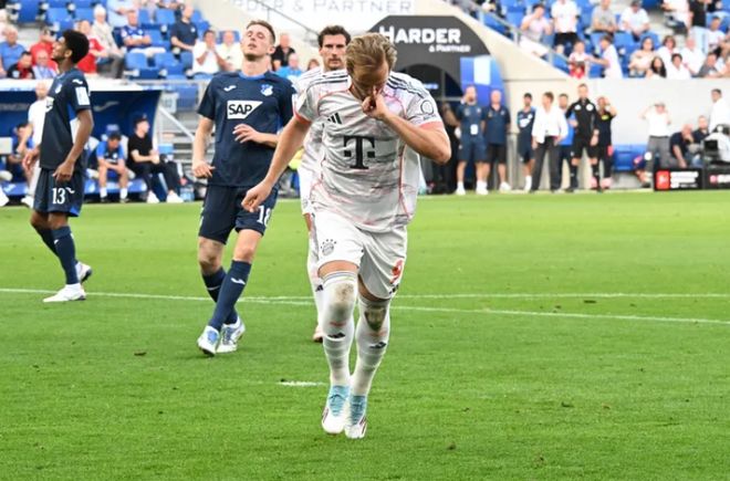 客场对阵霍芬海姆,凯恩延续了出色的状态。比赛的第43分钟,卡尔开出右侧角球,凯恩禁区中路右脚顺势扫射破门,打破了比赛僵局。