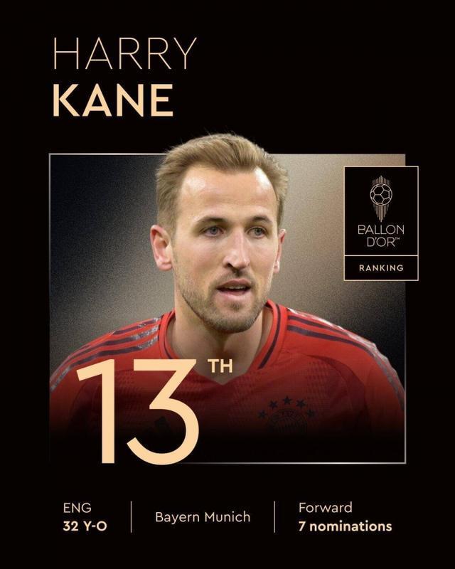 直播吧9月23日宣 2025年金球奖排名陆续公布,拜仁前锋凯恩获得第13名,生涯第7次入选。