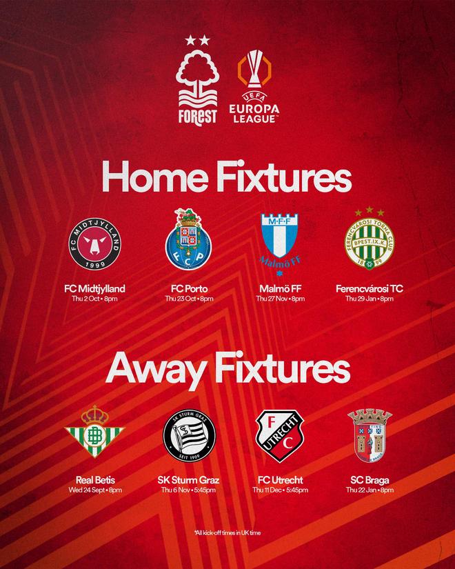诺丁汉森林欧联杯具体赛程(北京时间)