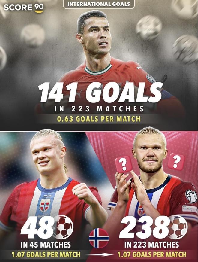 眼下的结论很清楚:C罗=总量领先;哈兰德=当前效率更高。