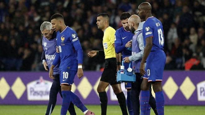 姆巴佩的伤情在法国队3比0战胜阿塞拜疆的比赛中进一步恶化。尽管他在这场比赛中首发出场并打入首粒进球,但比赛第83分钟,他因右脚踝旧伤复发被迫提前离场。随后,法国足协(FFF)出于保护球员的考虑,宣布将其从本期国家队名单中撤下,放弃接下来对阵冰岛的比赛。
