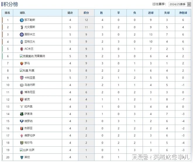 昨晚今晨,意甲联赛第5轮先战3场,国米客场2-0完胜卡利亚里,取得联赛2连胜,升至积分榜第3位,劳塔罗头球破门,小将皮奥埃斯波西托打进意甲处子球;尤文图斯主场1-1战平亚特兰大,仍旧保持不败,客队苏莱曼纳连场破门,卡巴尔扳平比分,德荣恩吃到红牌;升班马克雷莫内塞客场1-1战平科莫,依旧保持不败。