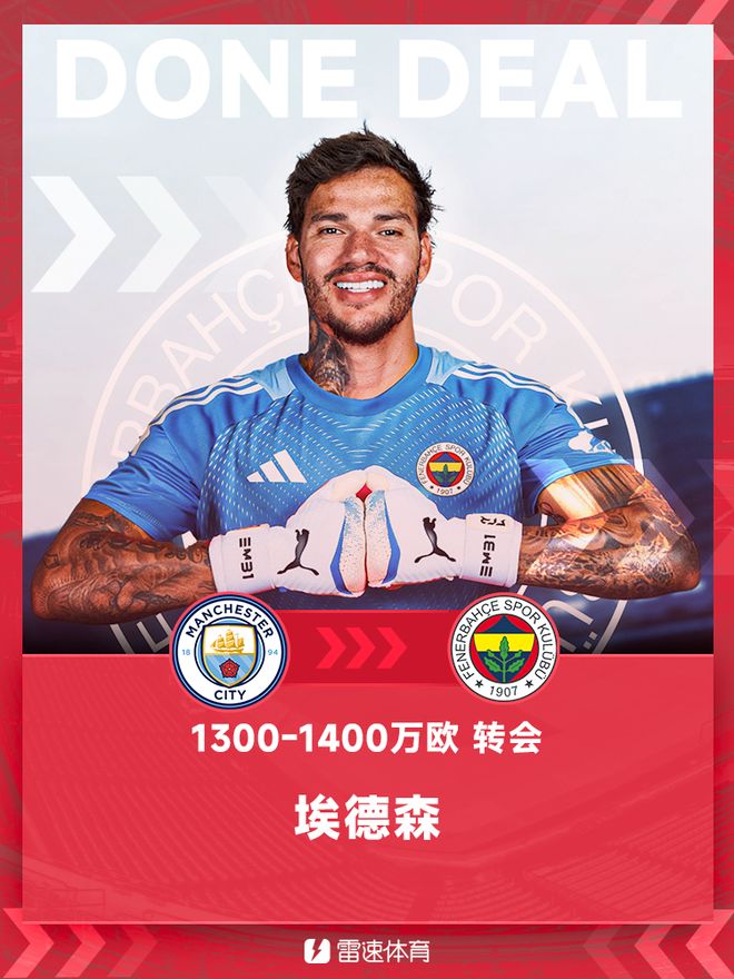 雷速体育9月2日宣 官方消息,曼城门将埃德森正式加盟土超费内巴切。据此前罗马诺报道,埃德森转会费在1300-1400万欧元之间。