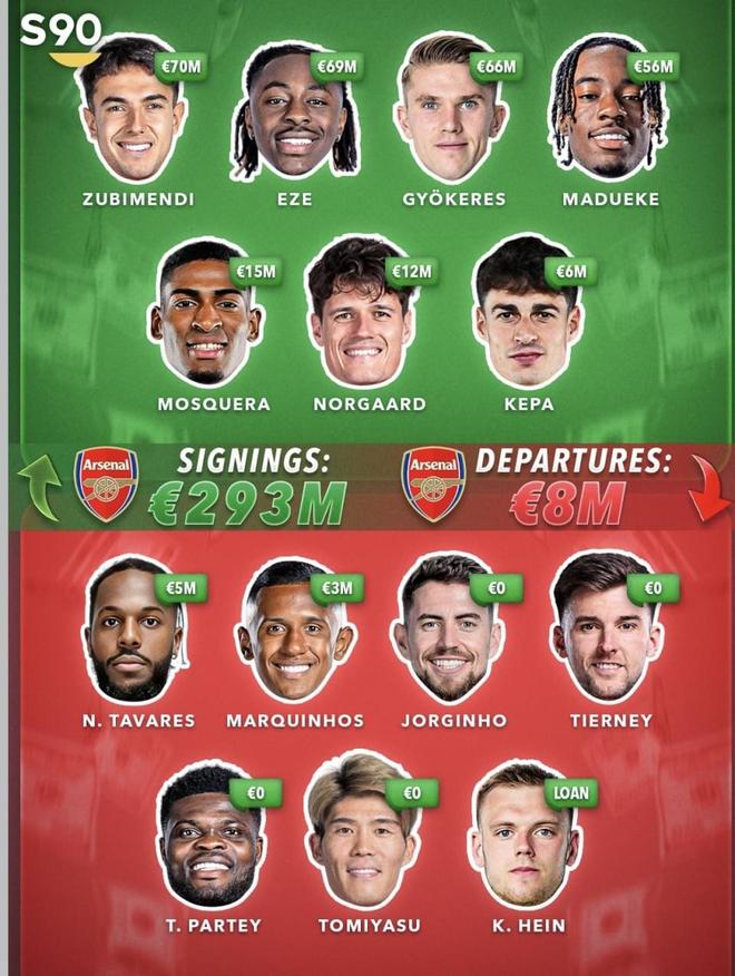 卖人方面只收回 800万,其余像若日尼奥、蒂尔尼、托马斯、富安健洋都是自由离队。