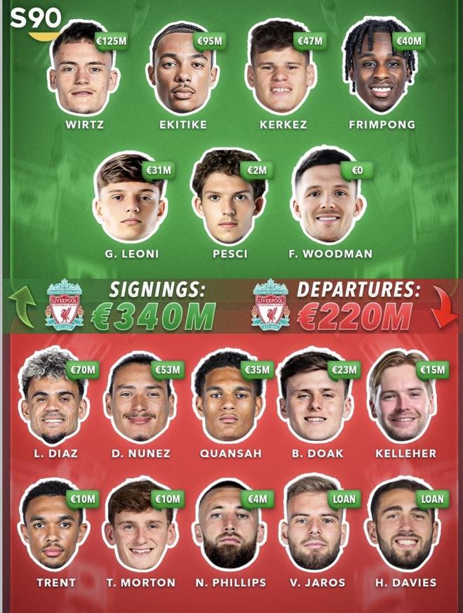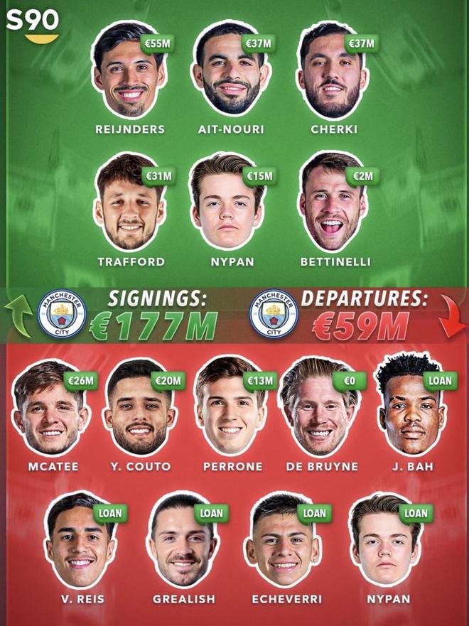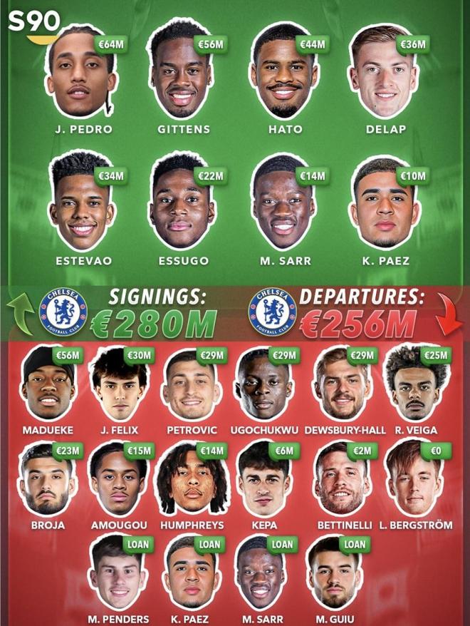 卖人方面回收 2.56亿欧元:马杜埃凯、菲利克斯、佩特洛维奇、乌戈楚库、德乌斯伯里-霍尔、维加等一大批球员离队。