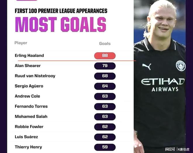 截至目前为止,哈兰德已经在英超实现了百场比赛,累计打进了88球,是英超历史前100场比赛中进球最多的球员。不得不说经历了异常残酷的英超节奏之后,哈兰德的进球效率已经得到了质的提升。