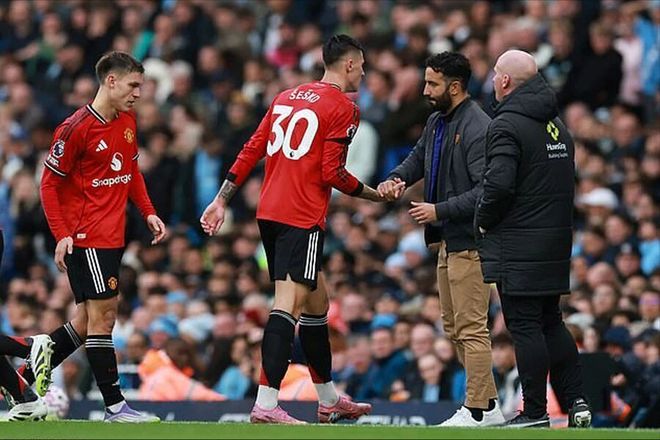 话不多说,两位处于风口浪尖的主帅一个固持己见,一个现实妥协——阿莫林依旧是三中卫,瓜迪奥拉派上了多纳鲁马。必须要指出的是,多纳鲁马绝不是水平和能力的问题,而是类型不匹配。