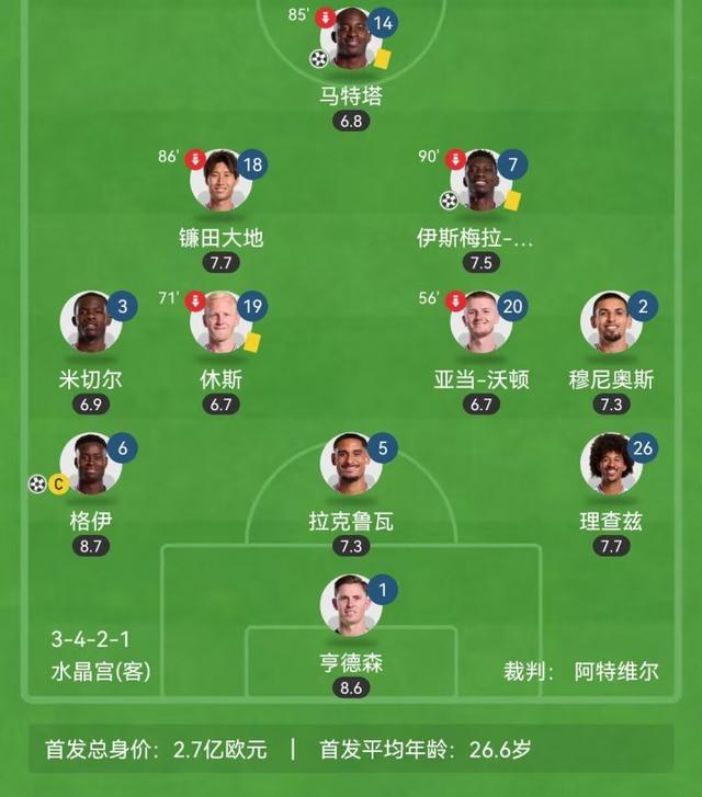 英超第5轮,水晶宫客场2-1西汉姆联
