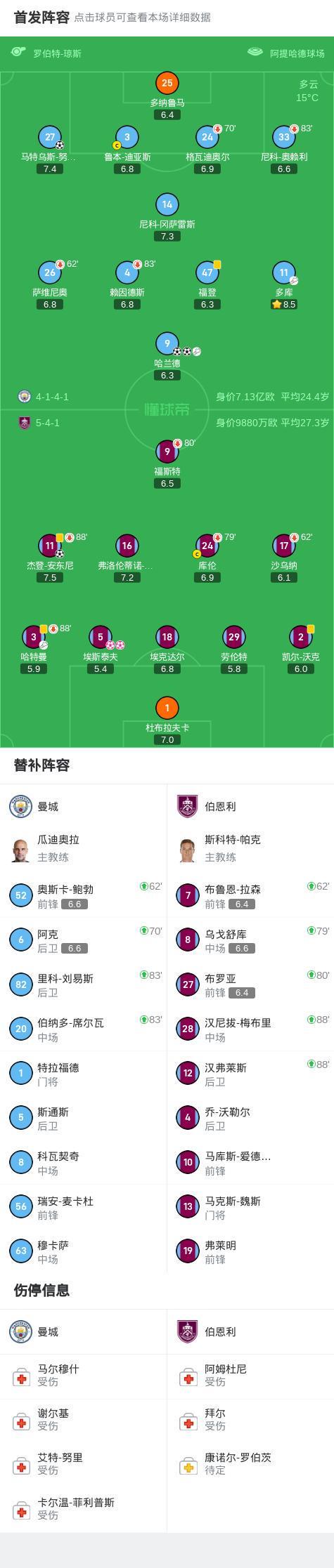 第65分钟,努内斯传球,埃斯泰夫再度自摆乌龙,曼城3-1伯恩利
