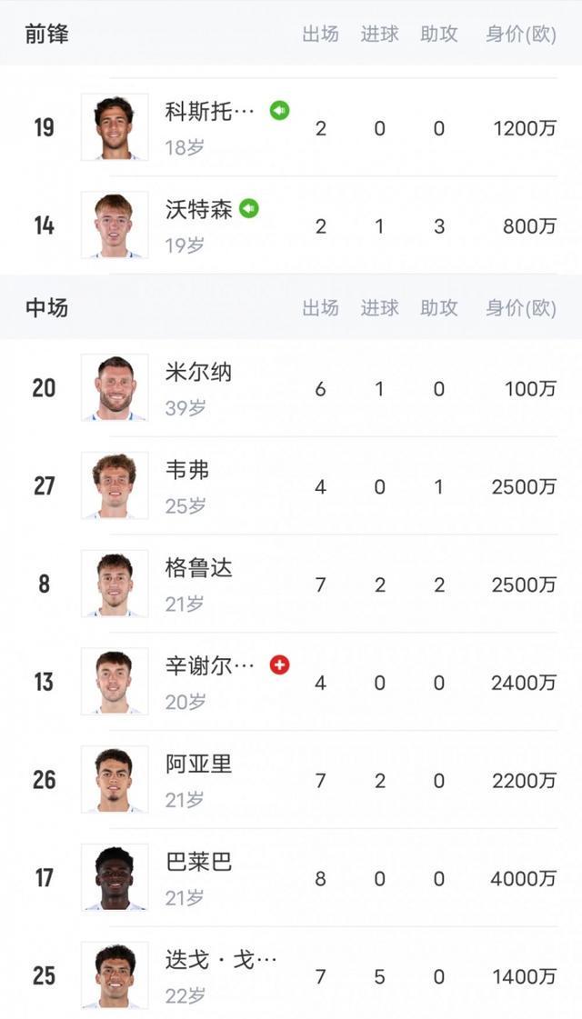 本场比赛,表现出色的有身价1400万欧的迭戈-戈麦斯、3200万欧的范赫克、1600万欧的德屈佩...
