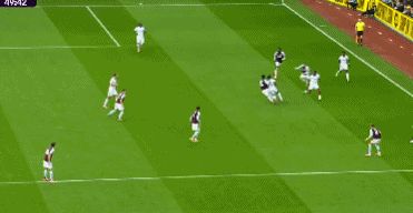 逃过一劫的维拉,在第38分钟终于扳平比分,沃特金斯单刀挑射得手。