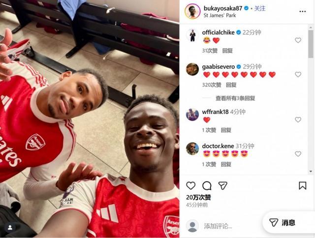 在社交媒体上,萨卡晒出更衣室照片庆祝来之不易的胜利,英格兰边锋笑容灿烂显然对赛果非常满意。