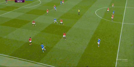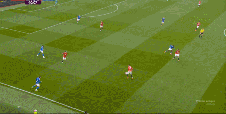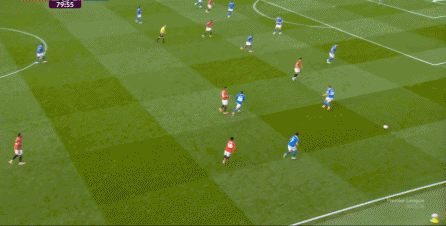 在过程中可以看到,对手打出威胁的关键点是又突破了卢克-肖的防守,锅是他的跑不掉,但在这之前,卢克-肖已经在防范对手在中路的接球了:
