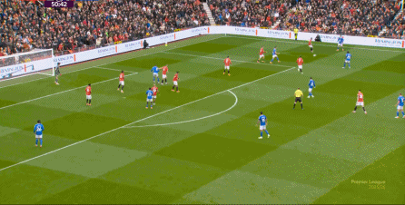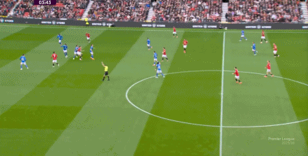 在这次5防3成功之后,曼联立刻就打出了反击,利用的其实就是阿玛德-迪亚洛这一点,只要摆脱掉对方防守意识可能不够的边锋球员,就会立刻进入到谁都管不到的空位里: