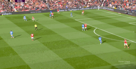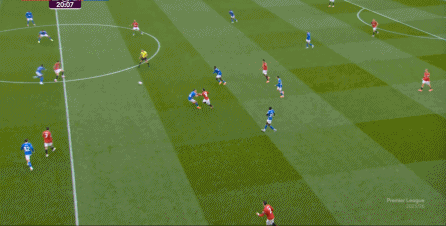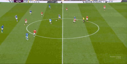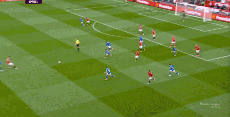 于是在第8分钟,曼联就再次利用到了343打四后卫球队的体系优势,阿玛德-迪亚洛进入空位得球: