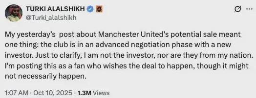 沙特著名投资人、现任沙特娱乐总局的负责人Turki Alalshik有参股曼联的冲动,敏锐的英国媒体立马展开了各类报道,不出意外地把水搅浑了。