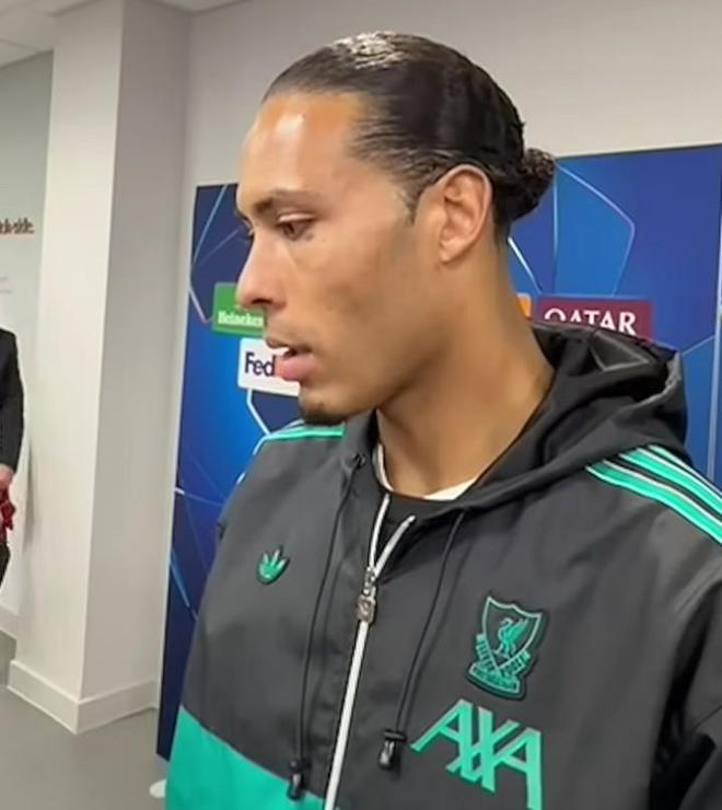 本赛季欧冠联赛阶段第4轮,利物浦主场1-0战胜皇马。赛后,利物浦队长范戴克在混合采访区接受了采访。