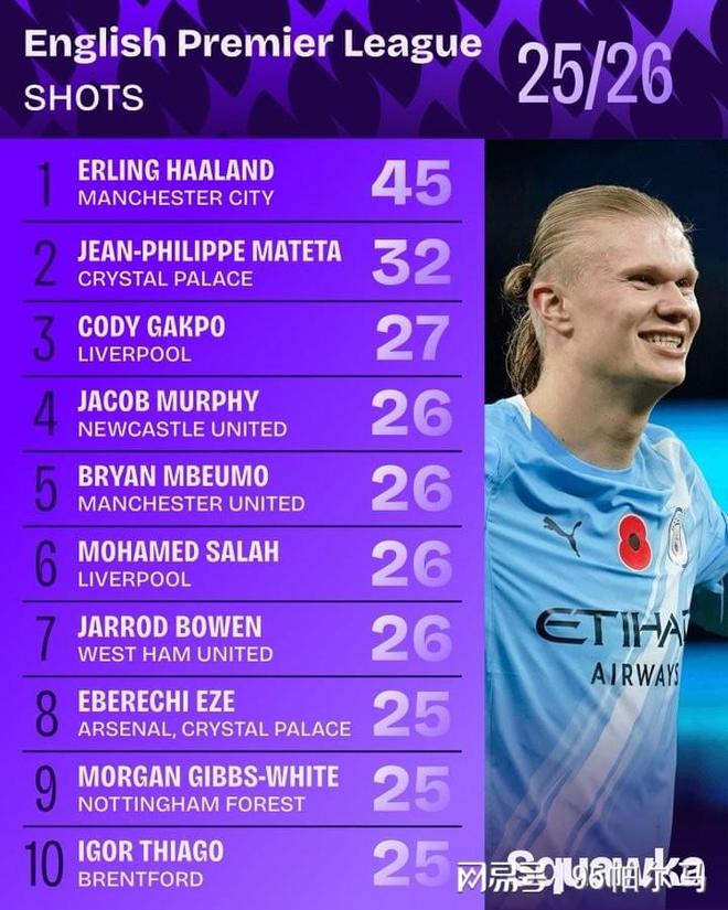 布伦特福德肯定不会想念在沙特淘金的托尼和在纽卡养伤的维萨,主帅安德鲁斯将蒂亚戈形容为“一个麻烦的家伙”,值得一提的是,他只用25次射正就换回了8粒英超进球,哈兰德则是45次射正换来了14粒进球。