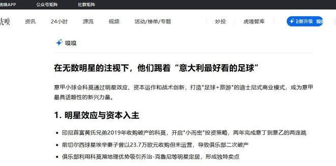 22. 信源来自:虎嗅网在无数明星的注视下,他们踢着“意大利最好看的足球”