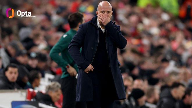 在斯洛特的带领下,利物浦本赛季至今各项赛事20场比赛战绩为10胜10负,而且最近12场输了9场。在这20场比赛里,利物浦一共丢了34球。