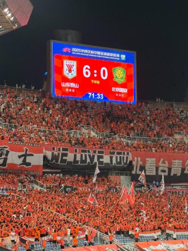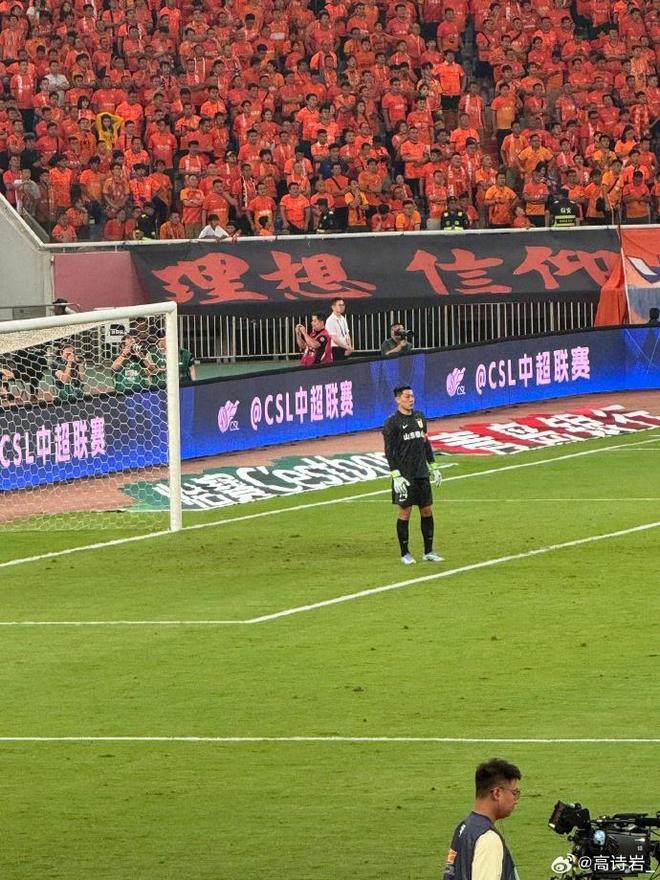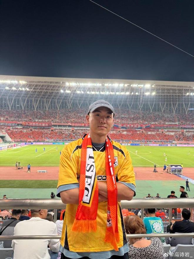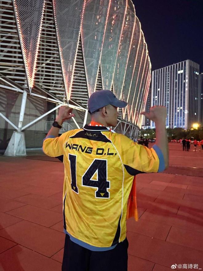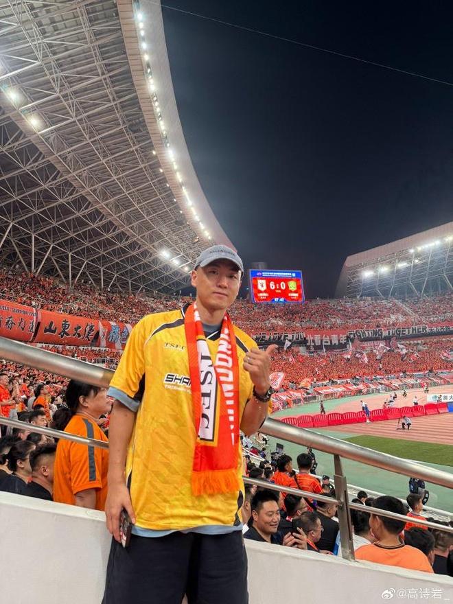 高诗岩晒出自己身穿泰山门将王大雷球衣、现场观看比赛的照片。今晚中超一场焦点战,山东泰山主场6-0复仇北京国安。